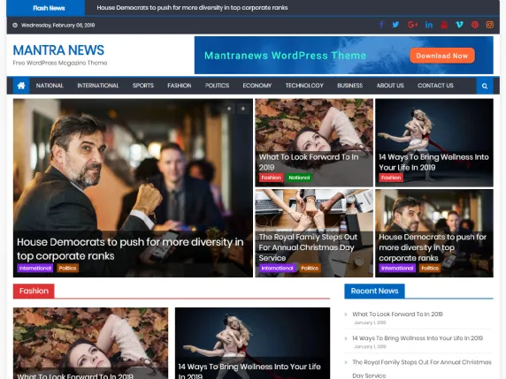 Mantranews is a responsive news portal style free WordPress theme presented by Mantra Brain. This theme can be basically used by online magazines, newspapers, publishing, personal blogs, and any kind of news site. In addition, it is a wholly widgetized theme so as to let users manage the website using the easy to use widgets.