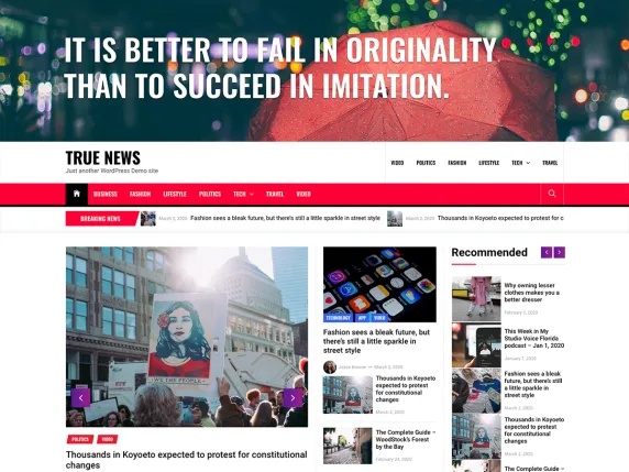 Talking about True News, it is a modern, vibrant, fresh, and trendy WordPress theme created specifically for blogging, online journal, magazines, and news portal. If you are a blogger or news publisher and write articles, stories, world news, have a travel blog or entertainment blog – you can share your article or lifestyle story with True News WordPress Theme.